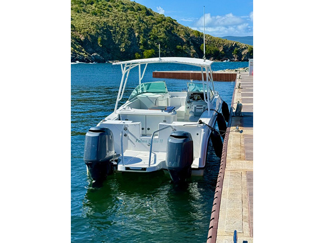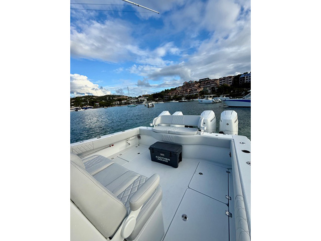 Powered by 4 x 400hp engines, she effortlessly combines speed and stability - making it perfect for exploring the Virgin Islands in style. Its cutting-edge catamaran design ensures exceptional performance, gliding seamlessly over the waves while delivering unparalleled comfort, even at high speeds. Whether you’re cruising between islands or cutting through open waters, the ride is as smooth as it is exhilarating.